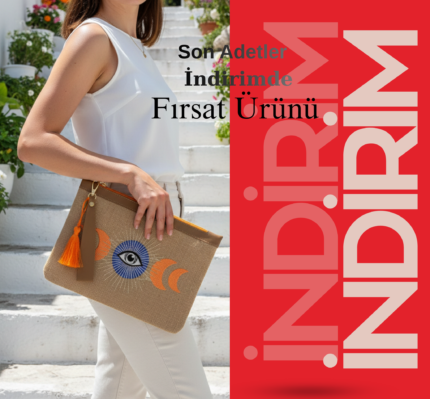 Ay & Göz Nakışlı Jüt Portföy Çanta